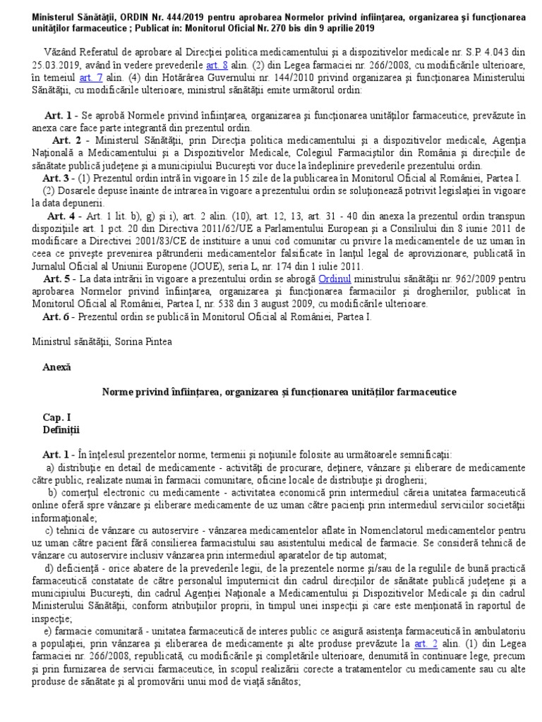 vizitati articolul complet aici : Casa NaÅ£ionalÄ de AsigurÄri de SÄnÄtate O serie de reglementări au fost aduse la legea farmaciei nr 266/2008 prin intermediul unei ordonanțe de urgență publicată în monitorul oficial din data de 7 august 2017. Legea farmaciei nr 266/2008 actualizată. Legea medierii actualizata 2019 lege nr.