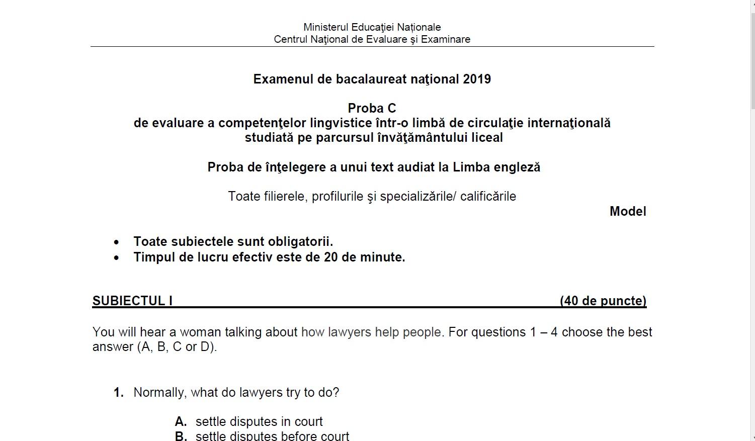 vizitati articolul complet aici : https://www.4bac.ro/modele-de-subiecte-rezolvate-2017-competente-lingvistice-model-limba-franceza/ We additionally have enough money variant types and with type of the books to browse. 13.06.2017 · competente lingvistice 2017 engleză. Edu.ro astfel, pentru candidaţii la bacalaureat, profilul uman şi profil real, există mai multe variante de subiecte date ca model.