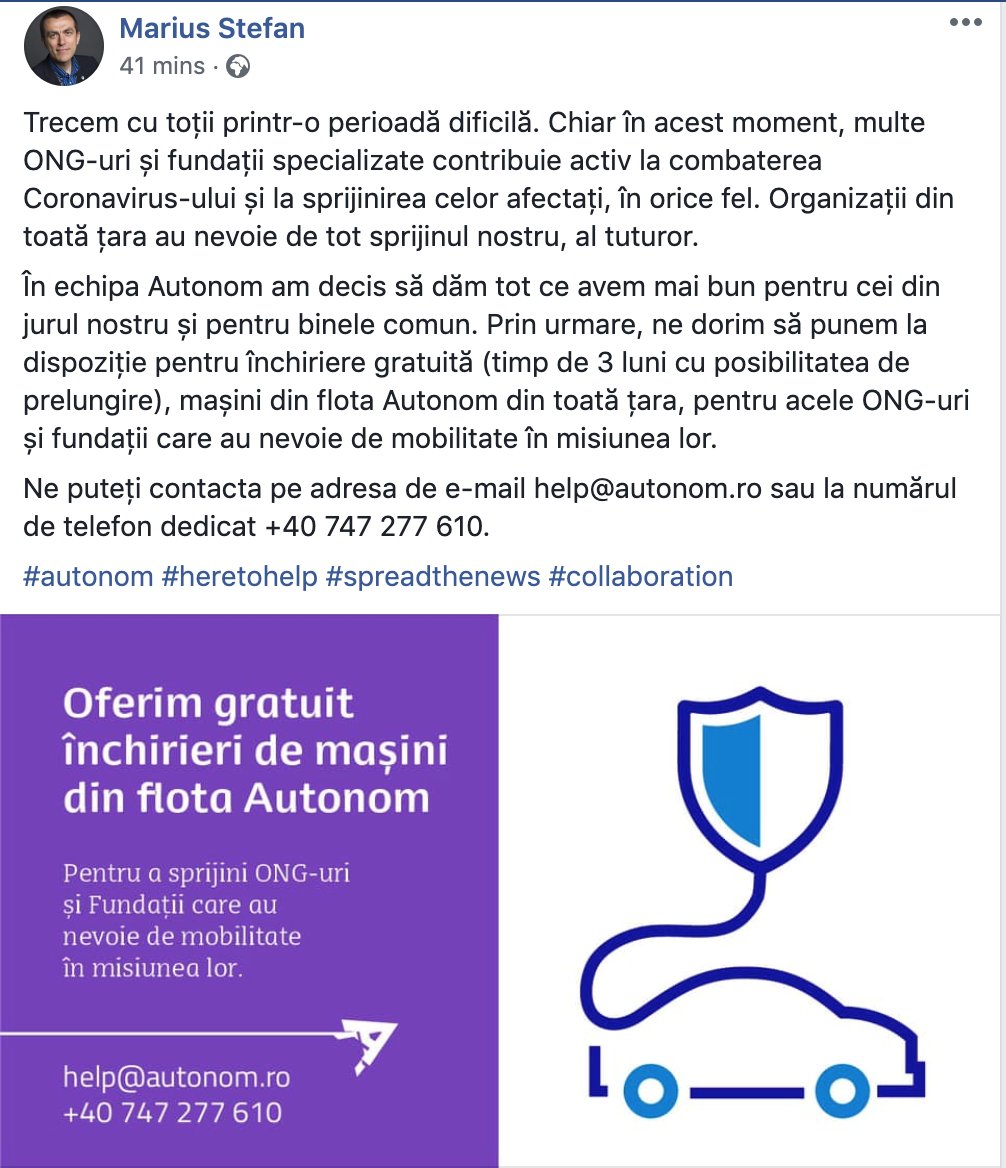 vizitati articolul complet aici : https://www.autonom.com/ The place is located in former ''transsylvania'' general insurance bank palace. Autonom rent detine peste 2000 de masini in toata tara, pe care le pune la dispozitia clientilor din toate orasele. Tot placuta si productiva i se pare si colaborarea cu fratele sau in dezvoltarea acestei afaceri.